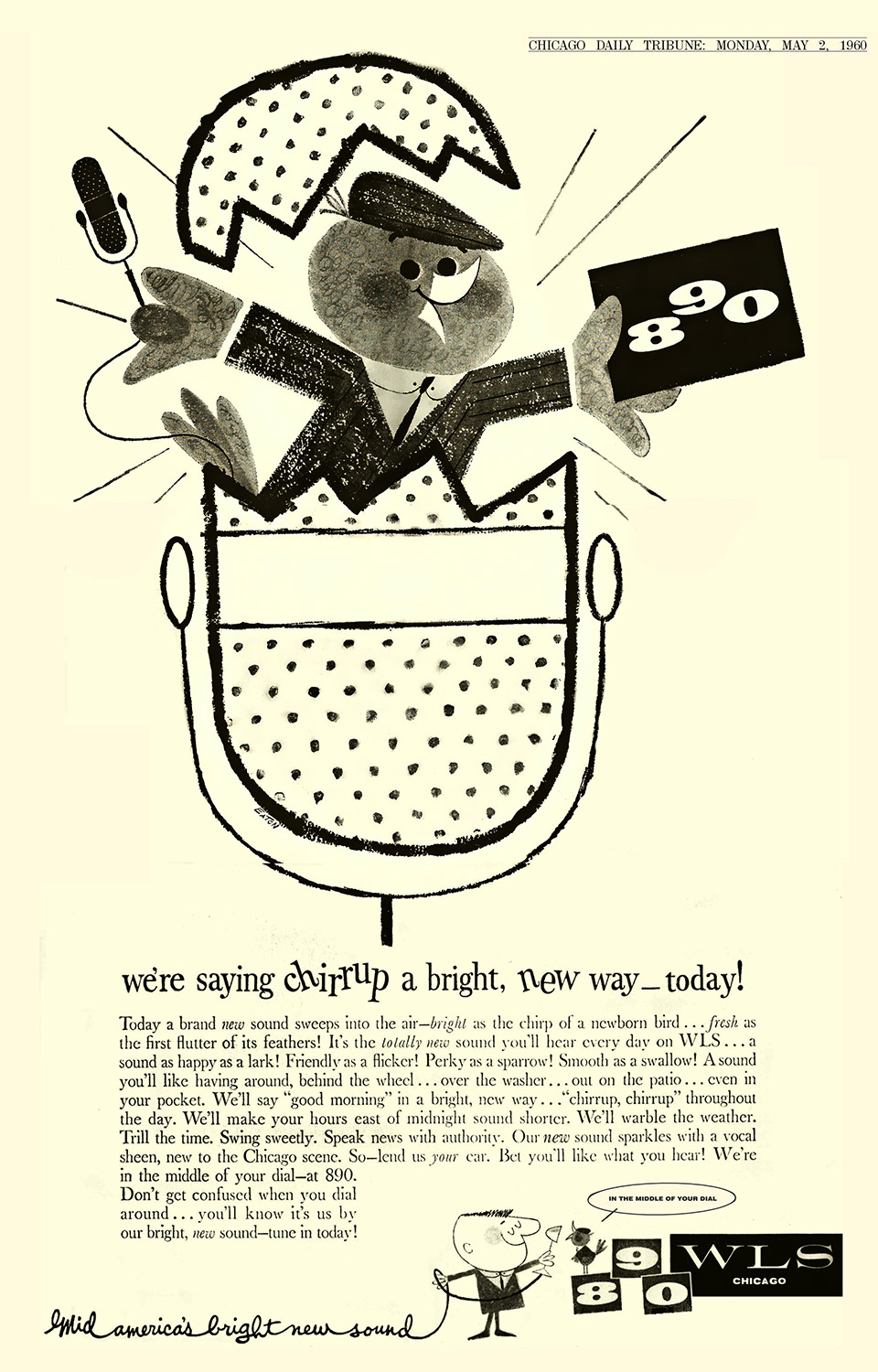 Here is the full page ad that ran in the Chicago Tribune on May 2, 1960, the day WLS' "Bright New Sound" hit the airwaves.